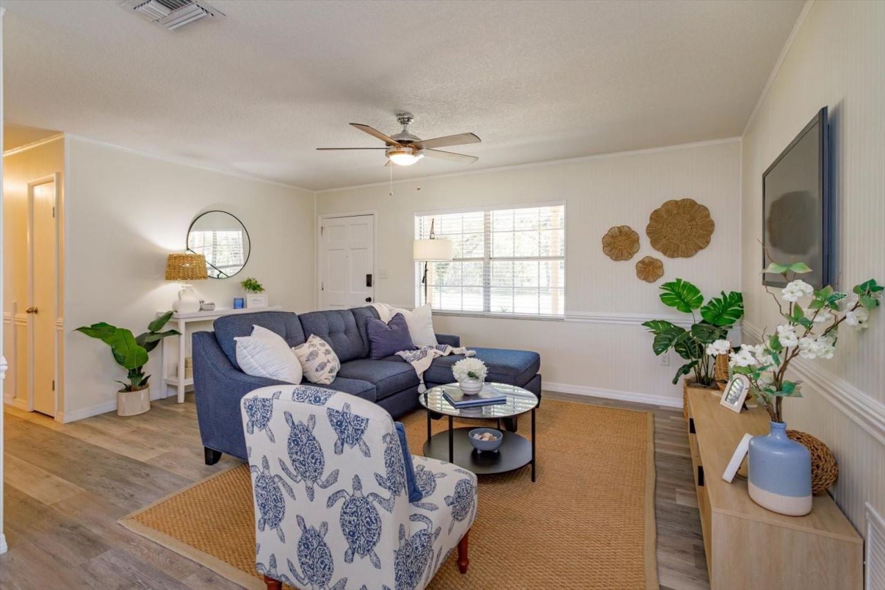 Charming ranch-style home in the heart of Brooksville, perfectly situated near shopping, dining, and everyday conveniences! This beautifully updated 3-bedroom, 1.5-bath home offers both comfort and style with a host of recent upgrades. Step inside to find fresh interior and exterior paint, brand-new luxury vinyl flooring and new window blinds throughout. The spacious flex room off the kitchen overlooks the expansive backyard and features large windows that create a bright, inviting space for gatherings. The kitchen is both functional and charming, complete with stainless steel appliances and a window view of the backyard. Enjoy outdoor living at its best with a welcoming front porch and a rear covered patio just off the kitchen-perfect for entertaining or relaxing. The fully fenced backyard sits on an oversized one-third acre lot, offering a shed for tools and equipment, and plenty of room to play, garden, or unwind. Additional highlights include NO HOA, new cedar posts and shutters, fresh landscaping, and updated bathrooms. The oversized two-car garage provides convenience with washer/dryer, extra cabinetry for storage and direct backyard access, while the circular driveway offers plenty of additional parking. This move-in ready home combines charm, functionality, and modern updates-don't miss your opportunity to make it yours!