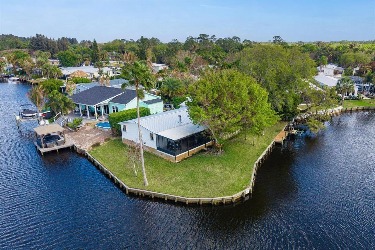 OCEAN ACCESS! This is a special property with largest lot in community, best views of South Fork of St Lucie River and canal -- 200'+ water frontage! Finishing touches are being made to this newly remodeled & upgraded 2/2 manufactured home with open concept. newer roof & new A/C. GARAGE FOR 36' MOTORHOME plus a 14' x 27 garage & 15 x 27' carport with high ceiling. Newer boat dock & seawall, boat lift, large screen porch & wooden deck. New refrigerator, induction stove & disposal. Fireplace. Lrg laundry rm could be converted into 3rd bedroom. Newly remodeled bathroom has free standing tub, separate shower, marble vanity top, built-in bar, accordion shutters and so much more! Don't miss out on this one of a kind property & home! It is likely to sell quickly. Fixed bridge with 6' clearance.